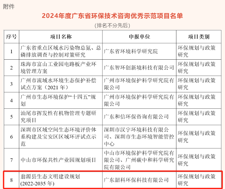 這一年我們齊心協(xié)力,勤練內(nèi)功,專(zhuān)業(yè)知識(shí)愈發(fā)扎實(shí),業(yè)務(wù)技能大幅增進(jìn),既有團(tuán)隊(duì)協(xié)作的默契,又有個(gè)人的成長(zhǎng)的突破,更有收獲成功喜悅。我司編制的《翁源縣生態(tài)文明建設(shè)規(guī)劃(2022-2035年)》、《新豐產(chǎn)業(yè)轉(zhuǎn)移工業(yè)園規(guī)劃環(huán)境影響評(píng)價(jià)》、以及《廣東旭鑫新能源科技有限公司年產(chǎn)650萬(wàn)只蓄電池項(xiàng)目環(huán)境影響評(píng)價(jià)》等3個(gè)項(xiàng)目被評(píng)為2024年度廣東省環(huán)保技術(shù)咨詢優(yōu)秀示范項(xiàng)目。